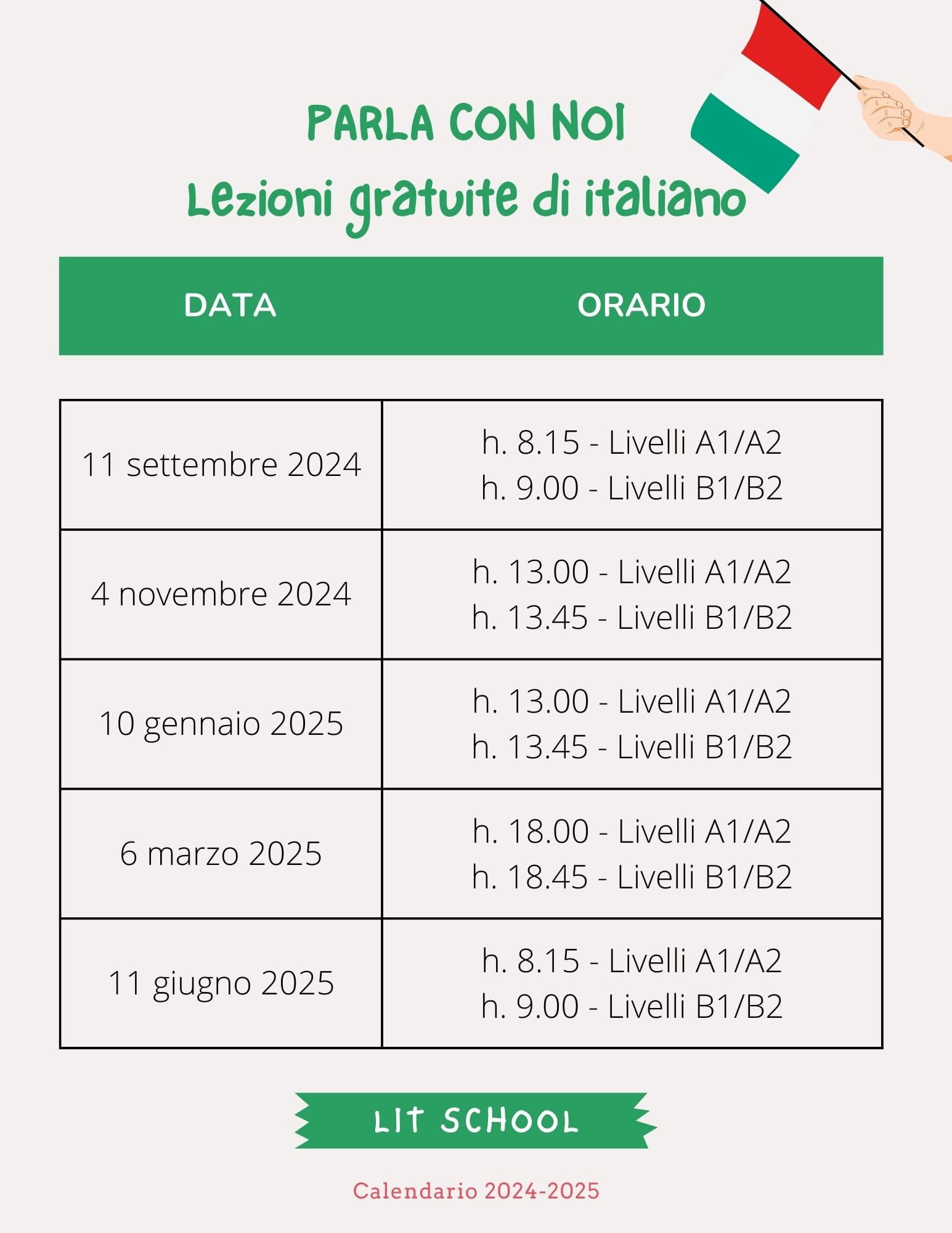 Titolare del trattamento dei dati è L’IT – L’italiano per stranieri di Francesca Romana Patrizi, Via Giovanni Maggi 75, 00176 Roma.